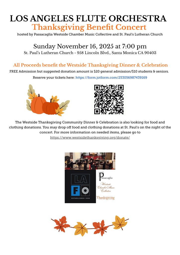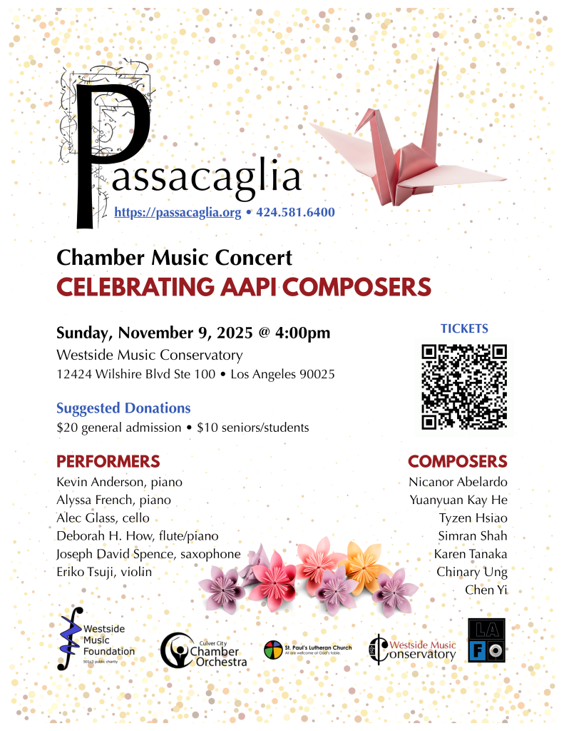 - Proceeds go to the Westside Music Foundation (501c3) Passacaglia Performance & Musicians Fund that supports this and future concerts.